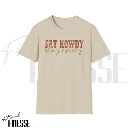 Say Howdy Stay Rowdy Country Distressed T-Shirt