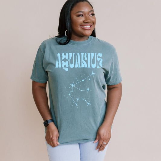 Aquarius Comfort Colors T-Shirt | Zodiac Star Sign Birthday