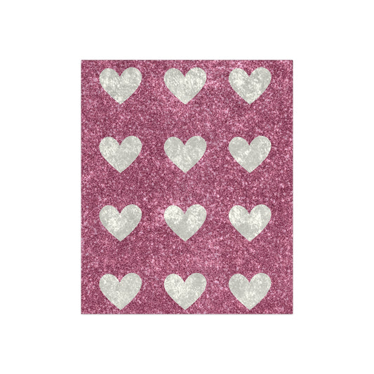 Pink and White Hearts Crushed Velvet Blanket