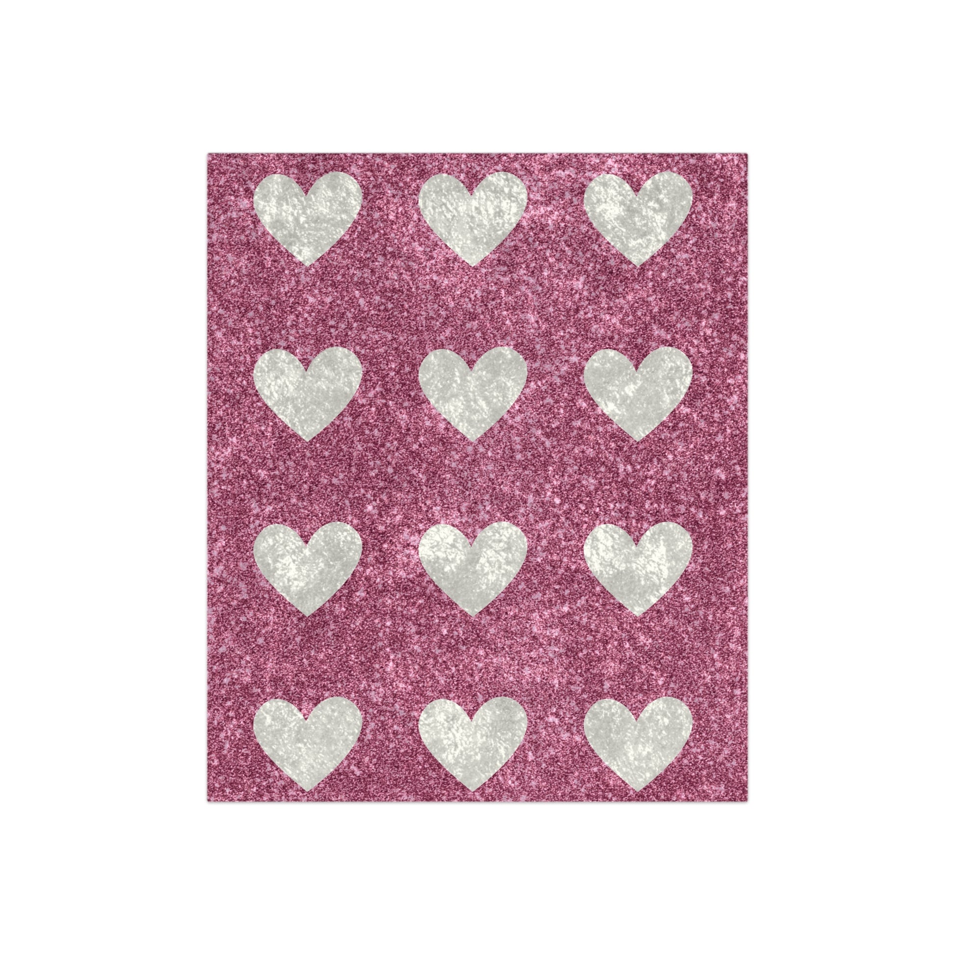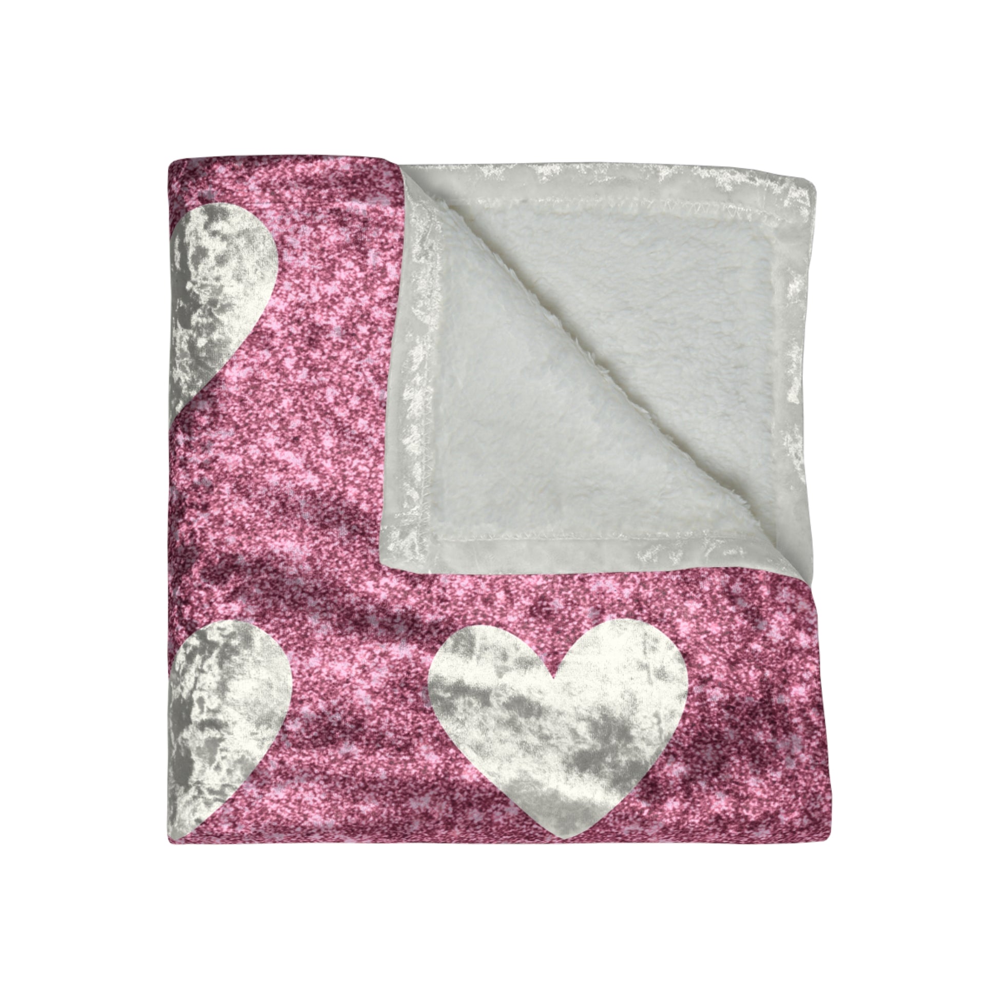 Pink and White Hearts Crushed Velvet Blanket