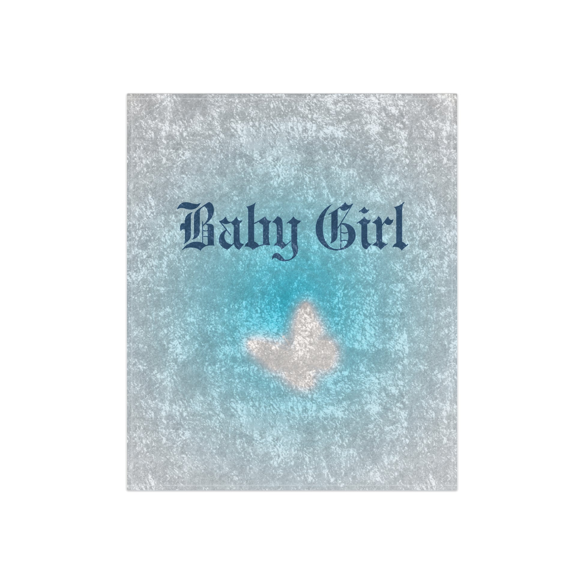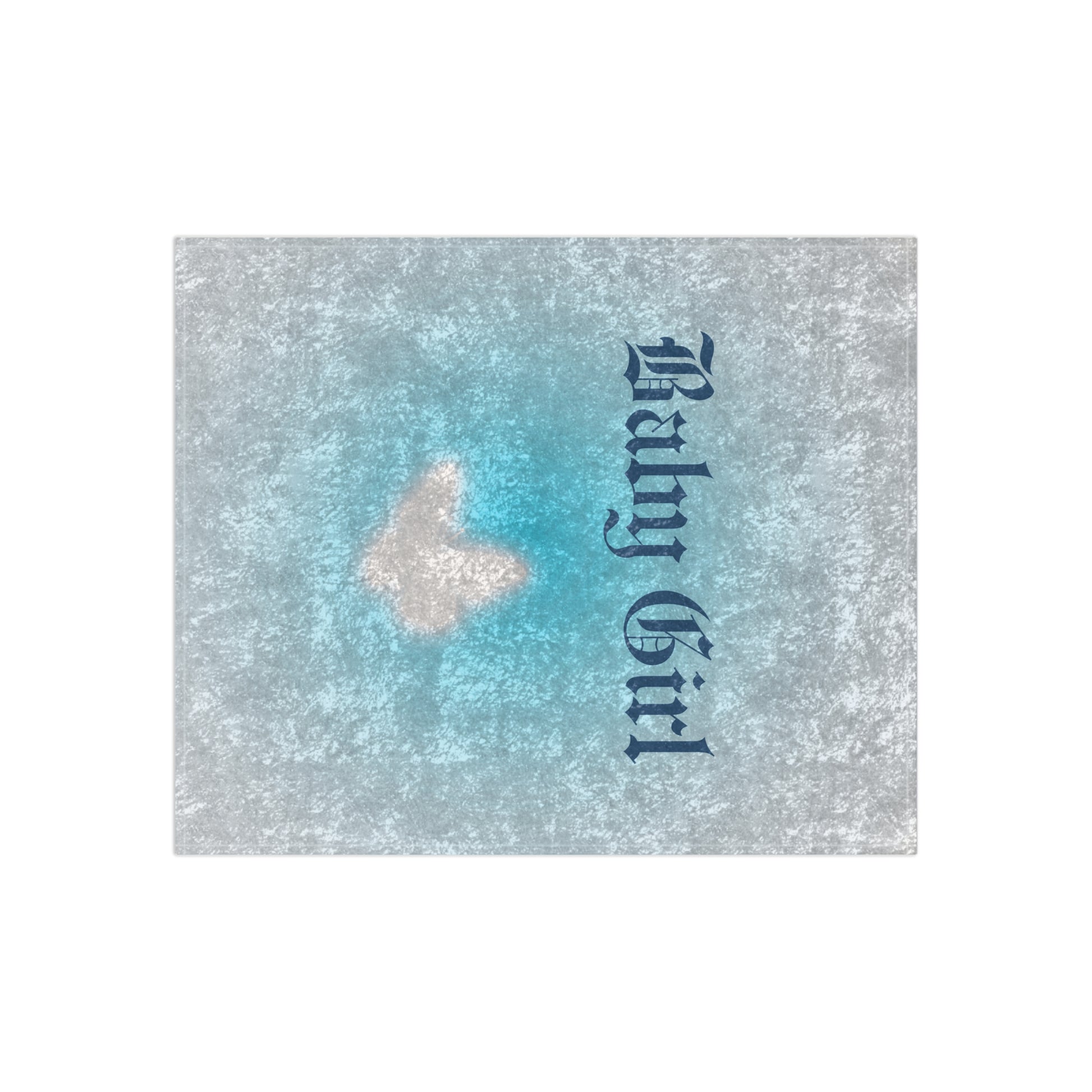 Shiny Blue Babygirl Butterfly Crushed Velvet Blanket