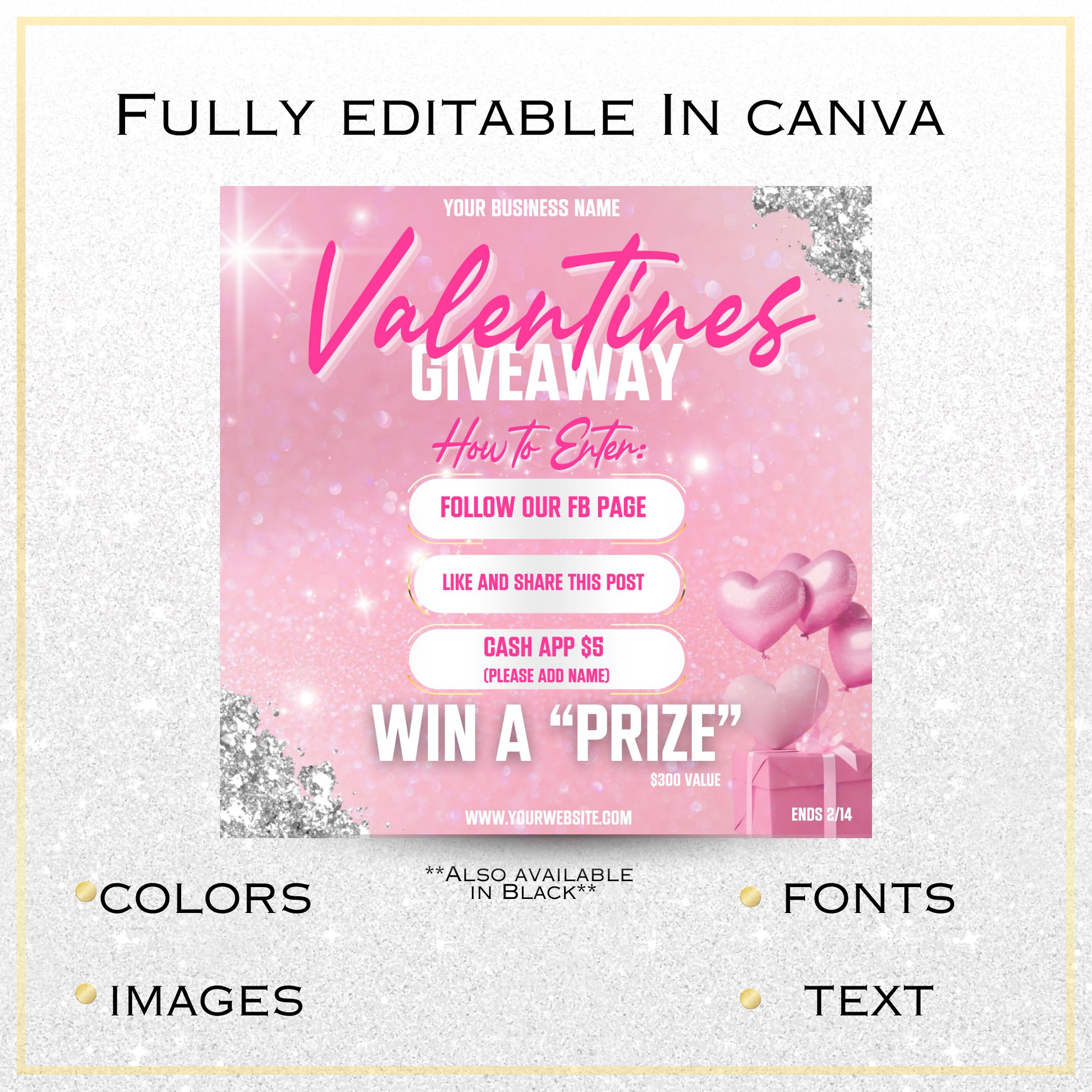 Make your Valentine’s giveaway the moment with this cute and customizable template! 💖✨ Perfect for brands, boutiques, or influencers ready to grab attention. Add your details, tweak the colors and elements in Canva, and watch the entries roll in. This trendy, scroll-stopping design is exactly what your followers have been waiting for!